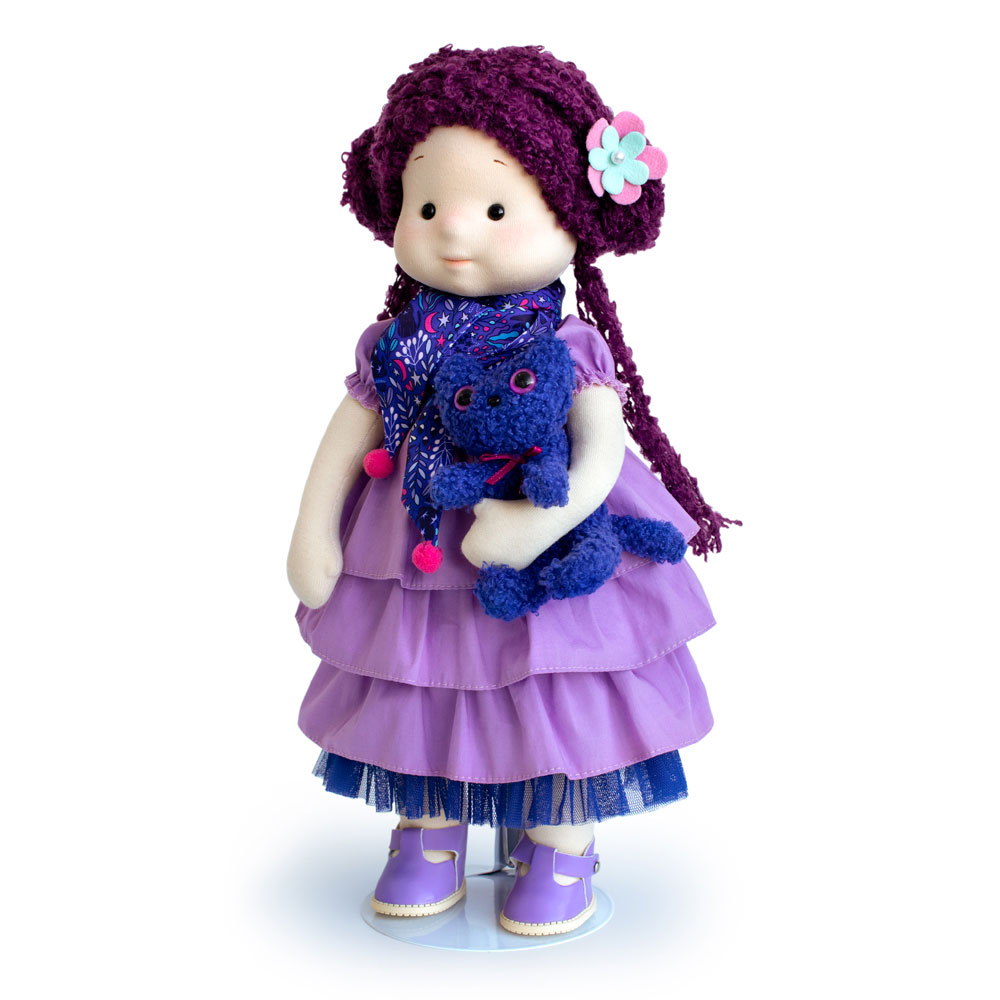 С Тианой её игрушка – кошечка Черничка с глазками цвета весеннего гиацинта, с шерсткой из буклированного трикотажа фиолетово-синего цвета и бантиком на шее малинового цвета с серебристым люрексом по краю.