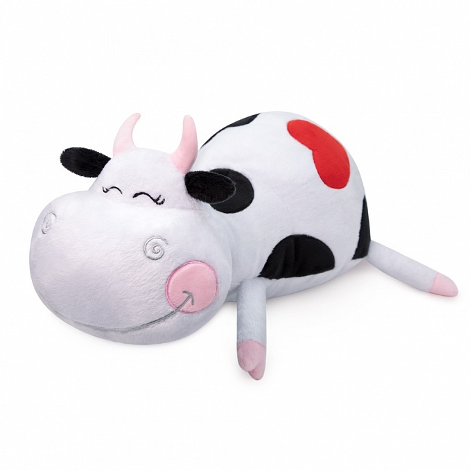 Спящая Бриджит-подушка сшита из чёрно-белого софта с алым сердечком на спинке и розовыми щёчками.
