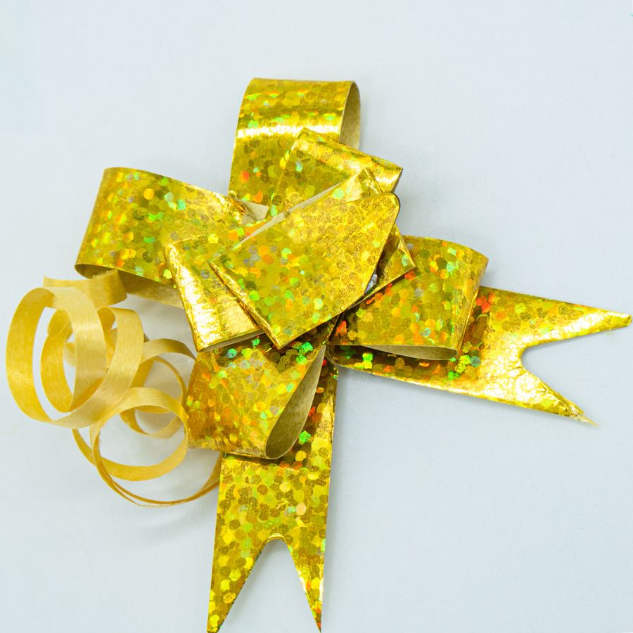 Бант затяжка — наиболее простой и быстрый способ украсить подарок. Для того чтобы лента превратилась в бант необходимо просто потянуть за среднюю ленточку. Ширина ленты на бантике 1,2 см, идеально подойдет для маленького и среднего подарка.