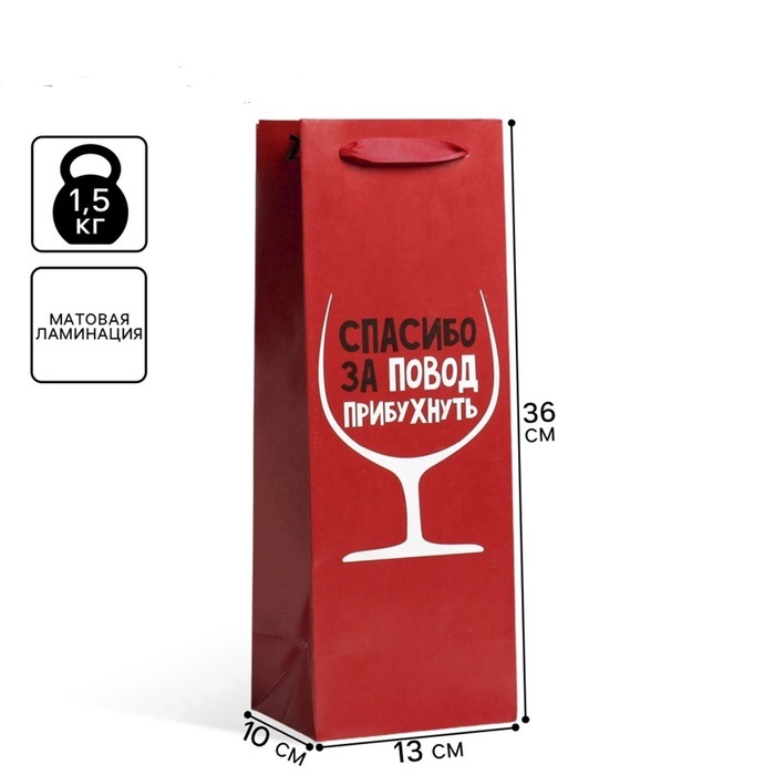 —Пакет под бутылку Спасибо за повод 35х13х10см 1шт