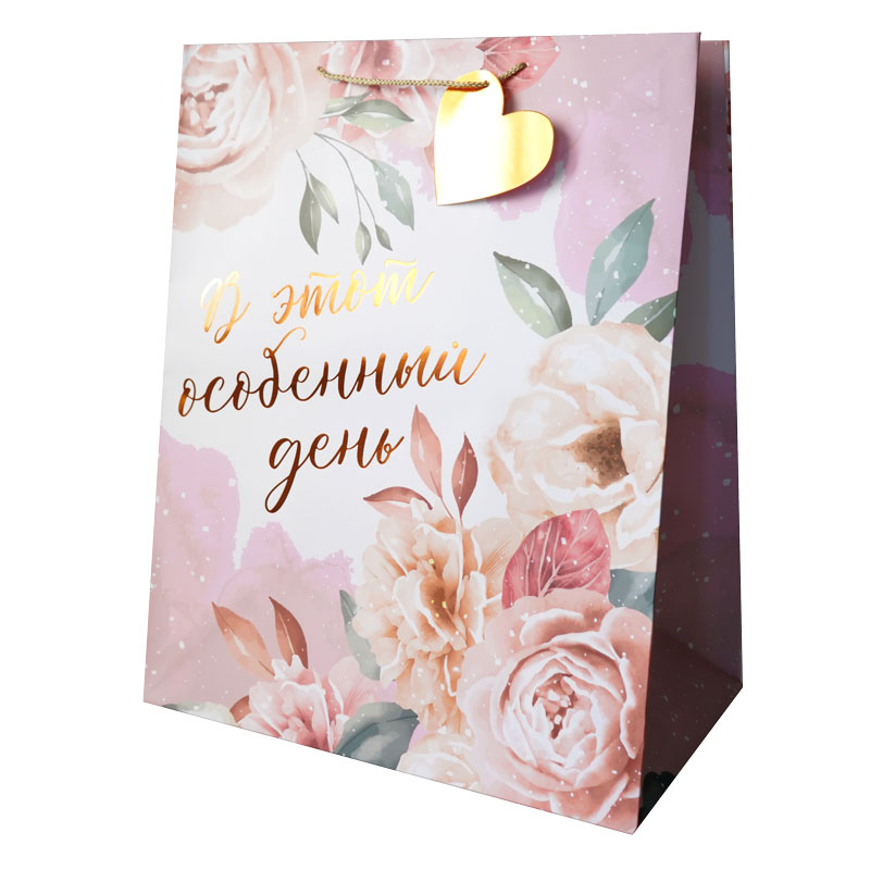 Снаружи пакет покрыт глянцевой ламинацией, что придает ему прочность, а изображению - яркость и насыщенность. Для придания дополнительного блеска на пакете есть элементы с тиснением фольгой. Плотность: 210 гр/м2
