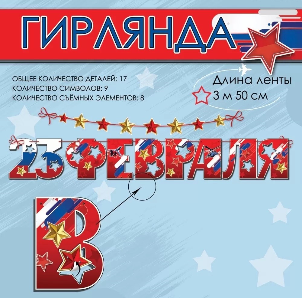 Яркая гирлянда-растяжка 2 в 1 со съемными вырубными элементами. Гирлянда состоит из 17 деталей, среди которых: 9 символов и 8 съемных элементов, в комплекте также представлена лента длиной 3.5 метра. Все элементы изготовлены из плотного картона. Материал прочный, хорошо держит форму и не помнется при транспортировке или использовании. Сверху на картонную основу нанесено четкое яркое изображение с защитным покрытием. Высокое качество печати и материалов делают украшение долговечным.