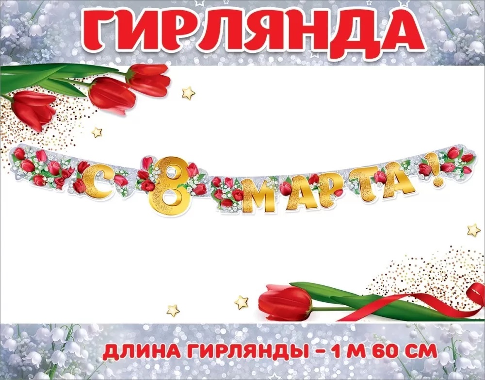 Гирлянда-растяжка из плотного картона. Материал прочный, хорошо держит форму. Сверху на картонную основу нанесено красочное полноцветное изображение, покрытое глянцевым УФ-лаком. Гирлянда не требует сборки — все детали скреплены между собой колечками пикколо (мини-люверсами). Для крепления к поверхности можно использовать булавки, канцелярские кнопки или скотч. Гирлянда отлично подходит для оформления фотозоны.