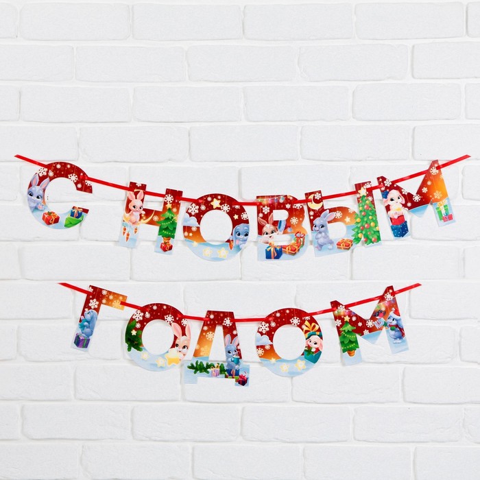 Растяжка - гирлянда "С Новым годом" - красивый и стильный атрибут праздничного оформления. Бумажная гирлянда, выполненная из плотного картона (200 грамм), будет отлично смотреться на кадрах в фотозоне или других локациях. Картонная гирлянда выполнена в современном стиле и подходит под различную тематику оформления праздника. Вывеска регулируется по длине и может использоваться в один или два ряда.