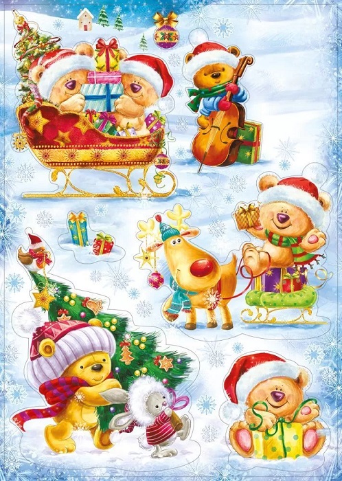 —Наклейки двусторонние Новогодние мишки 23х33см 1шт