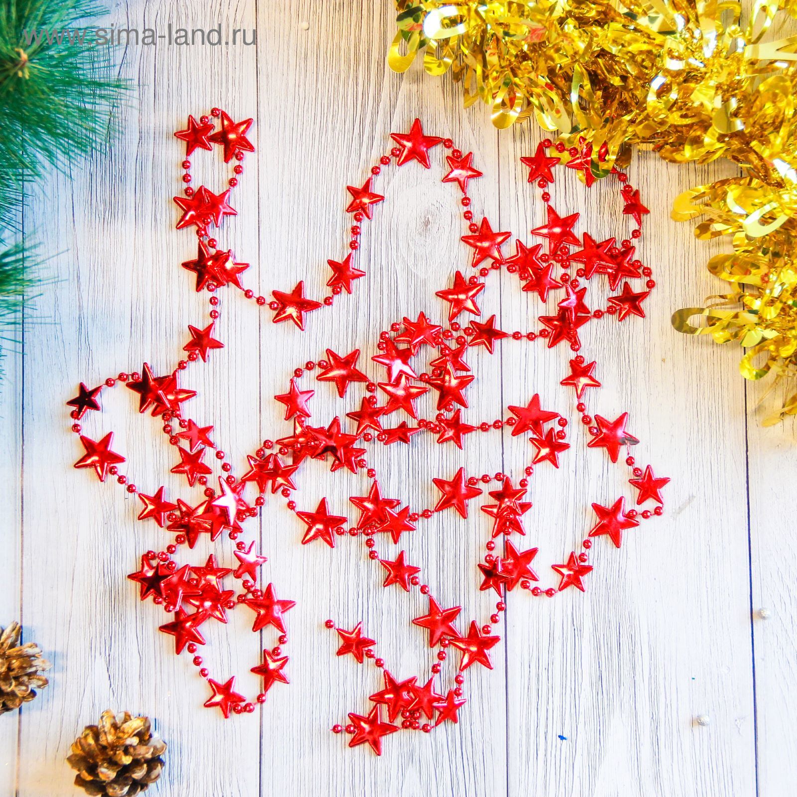 —Бусы на елку Звезды Красный 1шт